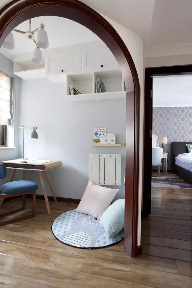 利用户型拐角处的一个小小空间,改造成属于孩子的一方小天地。